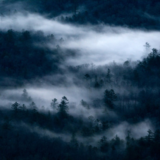 I arrived about an hour before sunrise, the parking area was covered in fog and the wind was roaring. Excitement grew as the fog started to move out once the sun started to rise. In the valley below you could see clouds dance among the pines, it reminded me of a quote from John Muir, "Between every two pines is a doorway to a new world". My eyes wondered around the landscape, soaking in the beauty God created and their were no words that could really describe what I was seeing. Clouds came in and hid the sunrise casting the valley into a variety of shades of blue.